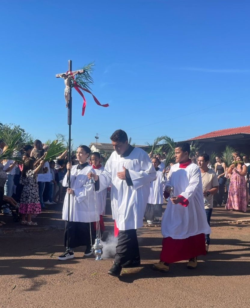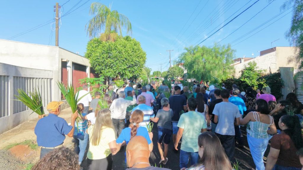 As fotos abaixo mostram o Domingo de Ramos, da Paróquia Cristo Sacerdote, de Apucarana/PR, que envolve as comunidades: Rainha da Paz, São Pedro, São Paulo e de Nossa Sra. do Perpétuo Socorro.