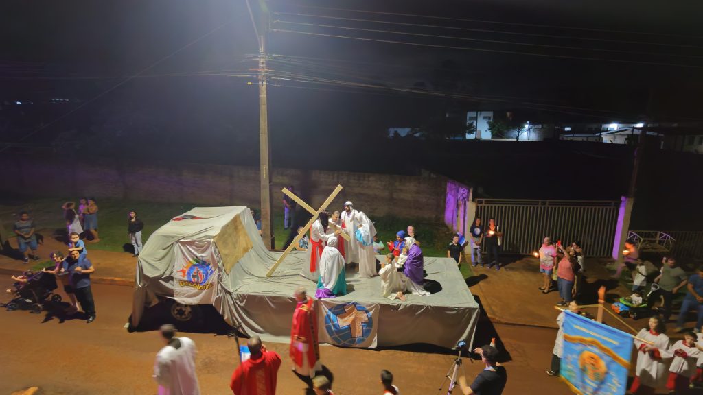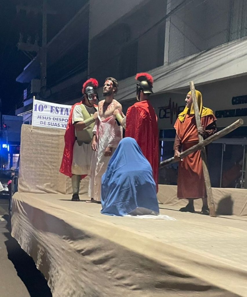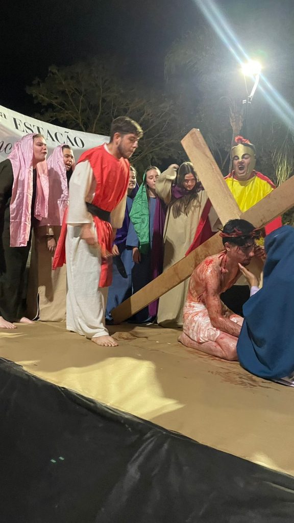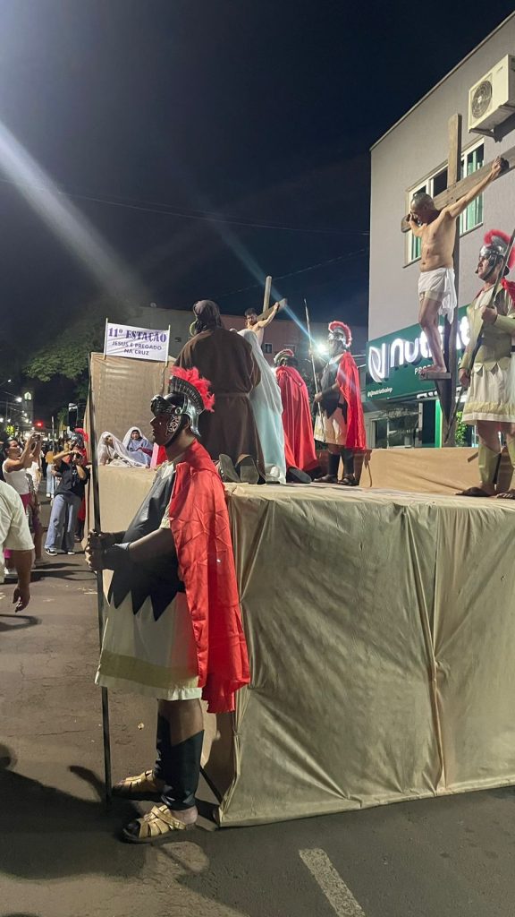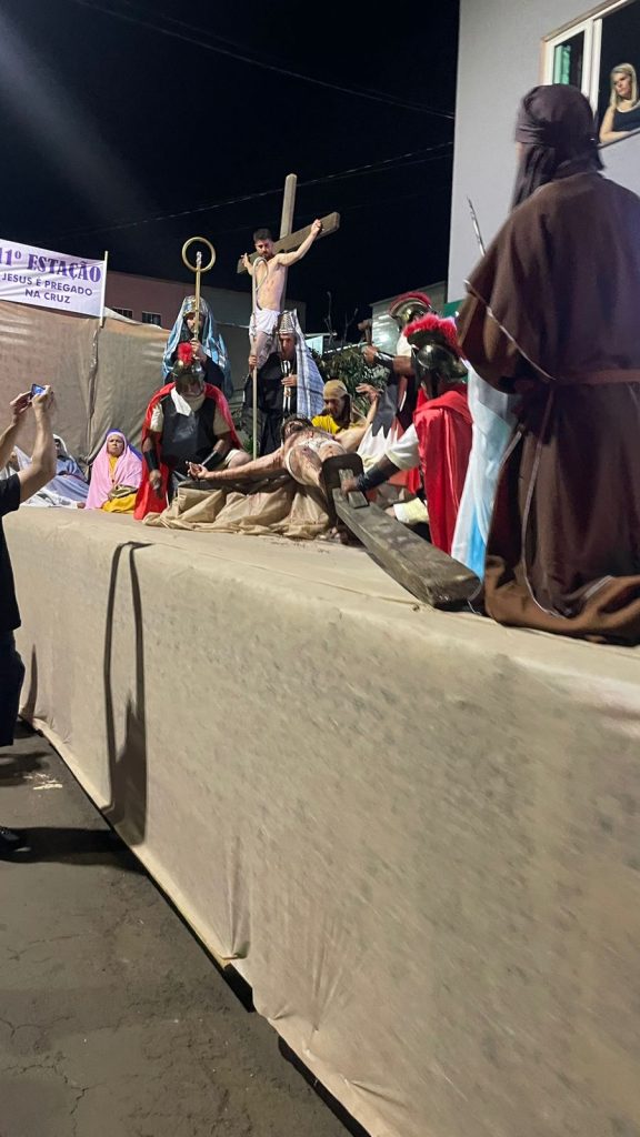 As fotos abaixo, mostram lindas manifestações de fé, da Paróquia Cristo Sacerdote de Apucarana/PR, com extensa procissão e apresentação do teatro da Paixão de Cristo.