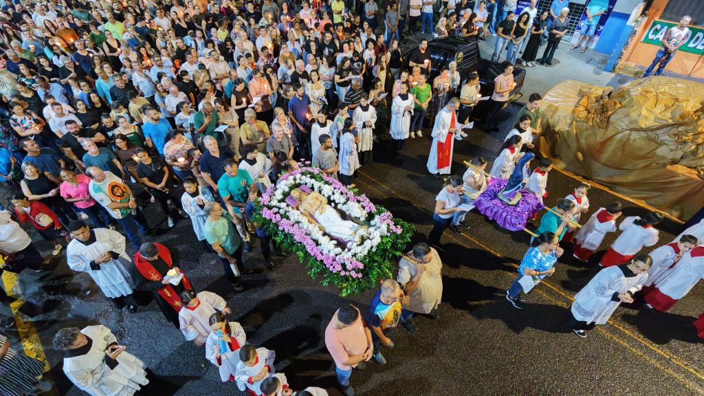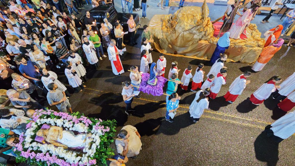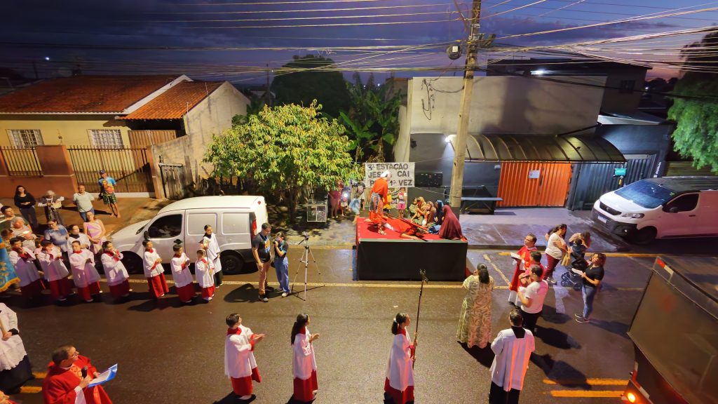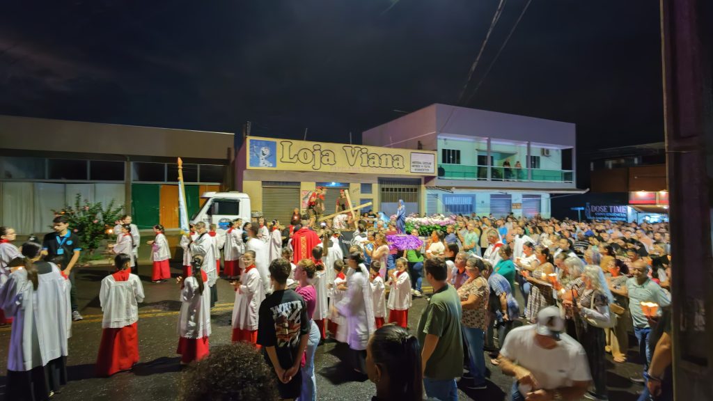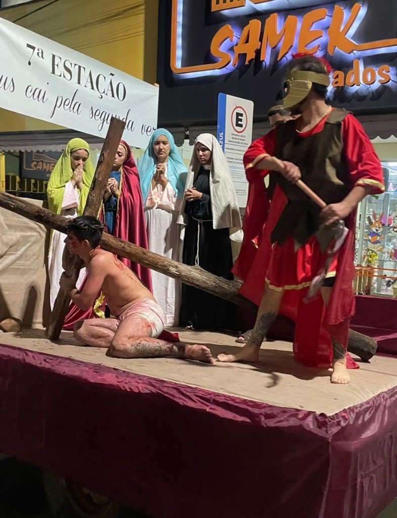 As fotos abaixo, mostram lindas manifestações de fé, da Paróquia Cristo Sacerdote de Apucarana/PR, com extensa procissão e apresentação do teatro da Paixão de Cristo.